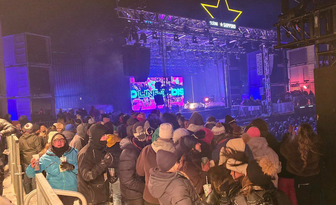It took a while for the front of the stage to fill up, probably due to the long line at the entrance, but also perhaps because of the audience’s excitement to explore the venue. But after only an hour and a half of opening, Gudfella, whose real name is Kyle Domingo, was already playing in front of a packed crowd. As the opening DJ on the Sapporo stage, he delivered a performance worthy of his reputation: a danceable, groovy set mixing house, techno, pop, and disco. The American artist, covered in several layers of clothing, danced behind his turntables, unzipping his coat a little, proof of the energy he put into his set.