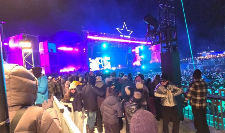 It was cold on the opening night of Igloofest 2026. With a wind chill of -15°C, the festival site was surrounded by a cloud of smoke formed by the breath of the audience, the food trucks serving poutine, the various heated areas set up to warm up, and the famous marshmallow campfires scattered here and there.