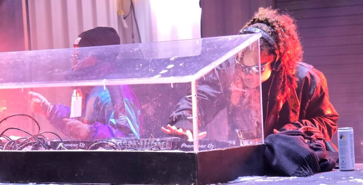 Very active on Montreal’s fringe scene, Liv K is a DJ and programmer for Parquette, a transitory cultural space with a queer vibe that is heavily involved in the rave scene. Although she is more frequently seen at events organized by collectives such as Flush, Bijou, and Discono, this was the DJ’s first time at Igloofest. Her eclectic and energetic set ranged from classic four-on-the-floor techno to remixes of contemporary hip-hop music, with a few Doechii tracks thrown in here and there.