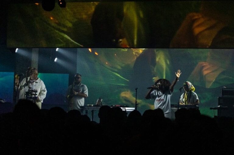 One of the most memorable moments was the appearance of Narcy, a pioneer of Arabic hip-hop. With a Palestinian flag projected behind him, he had the audience repeat the words “Don’t lose focus. Breathe,” reminding them that “It’s not about one, it’s about us.” ” Set to a jazz-tinged drum & bass beat, this rallying cry carried unexpected political and emotional depth, mourning and solidarity.