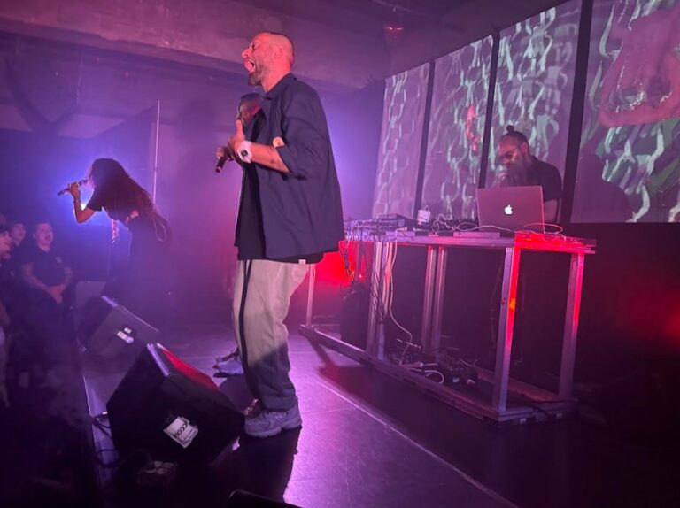 With one banger after another, the hip-hop group fired up an audience nearly two-thirds of whom were Arabic-speaking, many wearing keffiyehs as a symbol of resistance for the Palestinian cause. For one of their hits, “Emta Njawzak Yamma,” Maysa made surprising use of the microphone, creating a particularly amusing sound effect. Special mention goes to Maysa, who taught us how to shout the Arabic cry of celebration and took a moment to recite some of the lyrics translated into English, so that newcomers could understand their meaning.