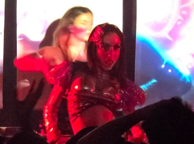 More rap than singing, her vocal delivery is certainly fiery, but a tad muddled, disheveled, a little lost in the maelstrom. Not bad, we agree, but we’re waiting for the special effects! With a budget that matches Miss Bombshell’s ambitions, we’ll replace the inflatable animals, the Valentine’s Day balloons, and this world of softcore doggies adorning the stage, including the main person concerned. Special mention to her excellent and very creative DJ, the New Yorker Ali RQ, to be watched closely.