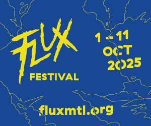Depuis l’an dernier le Festival FLUX soumet sa proposition artistique dans le paysage montréalais des musiques expérimentales. Jusqu’au au 11 octobre 2025, Flux souhaite offrir un mélange unique de concerts, d’ateliers, de tables rondes, de présentations, de causeries et de lancements, le tout axé sur la performance, le paysage et la politique.
