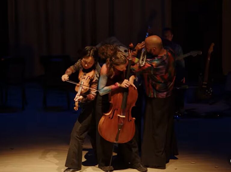 What does it physically produce in us to use our bodies to make music? Historically, the musician’s body was something people tried to erase. The musician’s body is considered less important than the dancer’s or the actor’s body, for example. But we are still a presence on stage. We are producing sound, but our body has a presence and it communicates something.