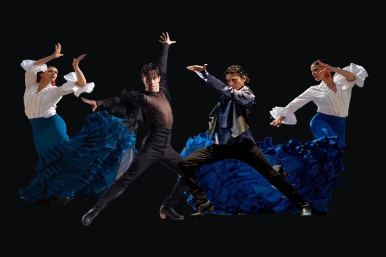 The first part of the performance tells the story of Laura, a young Cuban dancer who emigrates to Spain, dreaming of becoming a flamenco dancer. Upon arriving in Gypsy lands, she meets a young flamenco dancer who falls in love with her. This romance is interrupted by the appearance of a triumphant torero, admired by all. Passion and jealousy take hold, but destiny is sometimes fatal to love. One day, in the arena, the torero succumbs to the charge of the bull. Laura must overcome her grief, and her thirst for life drives her to rise above it through dance. This love story is told through a series of choreographies, songs, and flamenco guitar pieces. The atmosphere of each scene pays tribute to the great Spanish painters: Picasso, Miró, Goya, and Dalí. The second part of the show takes you on a musical journey of song and dance in the purest style of traditional Spanish flamenco tablaos. Each dancer gives their very best in dazzling solo choreographies that will set the audience ablaze. Dancers Agustín Barajas, Gad de la Fuente, and Laura García are part of the rising new generation of contemporary flamenco dancers. Laura García, dancer, has participated in numerous national and international events. Based in Córdoba, she regularly takes part in flamenco events and festivals. Recently, she successfully created the works Sireré and Cruzando Mares, toured China, and participated in the Fusion Granada 2031 Festival. Agustín Barajas, dancer, has toured extensively throughout Europe, Asia, and the United States. He has danced with the Ballet Flamenco de Andalucía, as well as alongside stars such as Eva Yerbabuena, Mariquilla, Rafael Amargo, and singer Miguel Poveda. Gad de la Fuente, dancer, studied ballet, contemporary dance, and flamenco. He regularly performs in Madrid’s most prestigious tablaos, including Casa Patas, Las Tablas, Centro Cultural Flamenco de Madrid, and Las Carboneras. He is also a principal dancer in the show Lorca es Flamenco. These outstanding dancers are accompanied by the evocative sounds of flamenco guitar, singing, and percussion. Together, these virtuoso artists will offer you a magical night, transporting you to the very heart of Gypsy Spain. Flamenco Alegría is a two-hour performance with a 20-minute intermission.