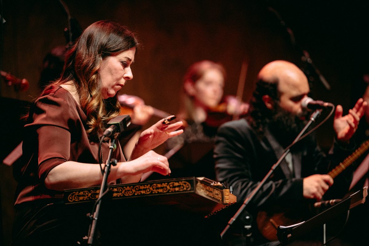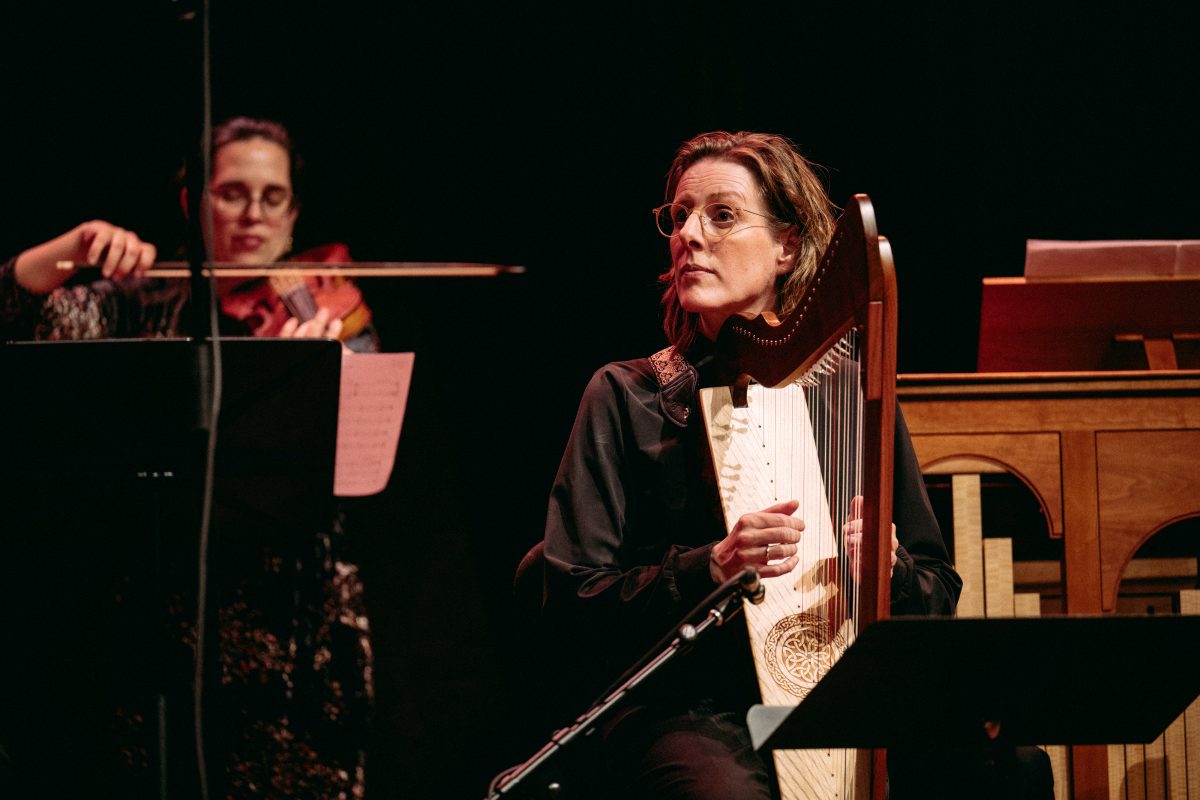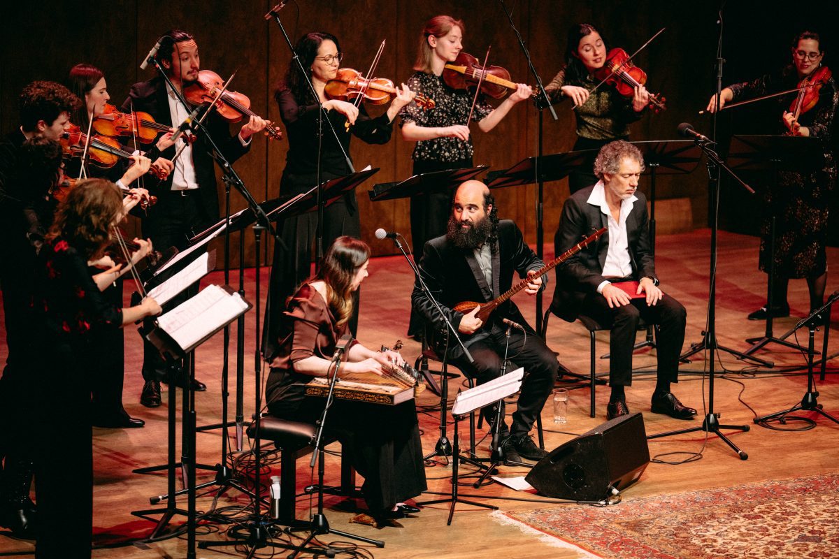 Je me concentrerai donc sur le concert lui-même. La musique, toute composée par des membres des deux ensembles (sauf une), unit des esthétiques différentes dans un écuménisme très réussi. Les sonorités microtonales (sensiblement atténuées cela dit) des instruments traditionnels de Constantinople (le setar de Kiya Tabassian et le kanûn de Didem Basar) s’entrelacent avec beaucoup de naturel dans les lignes polyphoniques classiques du Holland Baroque. Les rythmes ciselés et unifiés dans une cohérence impressionnante, les couleurs pétillantes tant aux cordes classiques qu’aux percussions (délicat mais essentiel Patrick Graham) et aux setar et kanûn, puis également les voix de Tabasian (merveilleux chant traditionnel persan) et de Adrián Rodríguez Van der Spoel (chant médiéval), tout concourait à nous transporter dans un ailleurs où la beauté et la bonté n’ont rien de péjoratif, et ne sont surtout pas perçus comme une faiblesse.