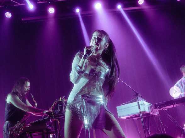 Si écouter Virginie B est une expérience un peu hors norme, la voir en concert l’est encore plus: surtout quand au beau milieu de son spectacle, elle brandit une épée face à la foule, s’amusant avec pendant qu’elle continue de chanter.