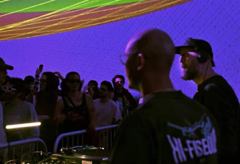 Puis est venu le moment que j’attendais vraiment : Luca Lozano & Mr. Ho. Un duo culte livrant un set aussi récréatif que imprévisible. House, breakbeat, techno décalée, influences rave 90s… Tout y passait, avec cette impression délicieuse de retour aux sources. Voir deux CDJ accompagnés de deux platines, les DJs fouiller dans leurs bacs de vinyles, entourés de petites boîtes empilées derrière eux, avait quelque chose de vraiment agréable à voir, et à vivre. Un vrai rappel que la club culture se vit de différentes manières, et que parfois, un petit retour aux sources, ça fait vraiment du bien.