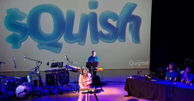 Des employés de l’entreprise fictive Quigital nous accueillent en nous offrant un badge sur lequel figure un code QR nous permettant de nous inscrire sur la plateforme en ligne de Quigital. Sur celle-ci, on nous demande d’accomplir différentes tâches : scanner le badge d’un collègue, acheter des objets ou des privilèges virtuels avec les points accumulés dans l’application, ou même discuter avec Quincy, le robot conversationnel de Quigital.
