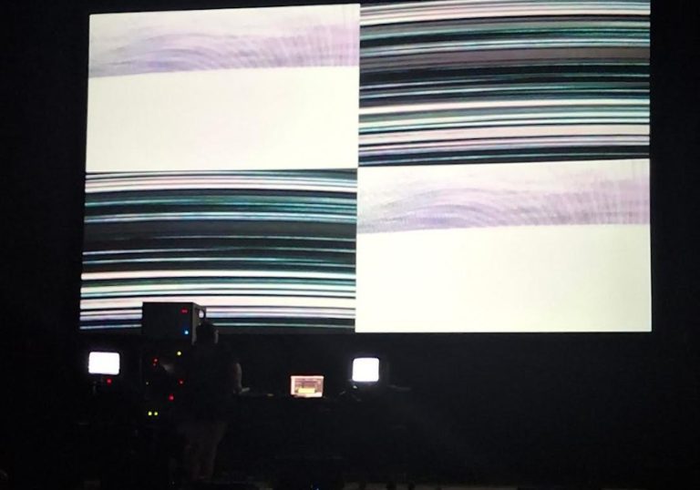 Après un court entracte, Reste de Ziryab El Hihi, poursuit le concert. Une structure au centre de la scène avec un vidéo défilant une forêt devant nos yeux, une rupture interrompt ce début de pièce laissant place à un bruit blanc et la structure qui s’anime tranquillement bougeant sous nos yeux, l’aluminium producteur de sons sous ce bruit blanc constant..