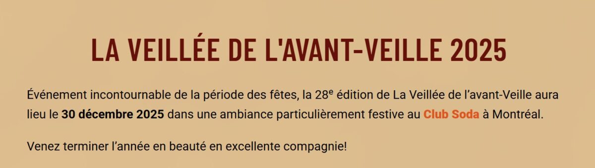 Le 31 décembre, c’est pas le temps de mettre ton drapeau en berne… C’est pas au Shack à Hector que ça s’passe, c’est au Club Soda que le party se passe!